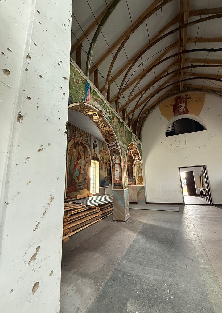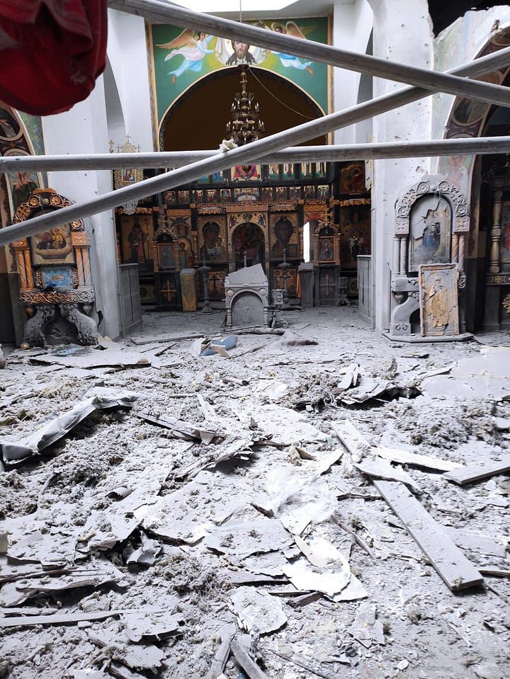 Some 1000 civilian residents of Izium are buried in several mass graves. The retreating Russians had left booby-traps in children’s toys. The Baptist church was left with only three walls standing. Almost every building in Izyum was damaged or destroyed. The local Ukrainian Orthodox Church - Moscow Patriarchate emerged almost unscathed.